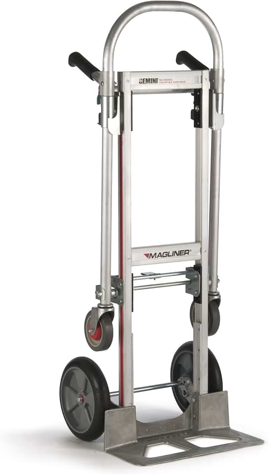 Magline GMK16UAB Aluminum Gemini Jr Convertible Hand Truck, U Loop Handle, Cushion Wheels, 500lbs Capacity, 51" Height, 47-1/2" Length x 21" Width