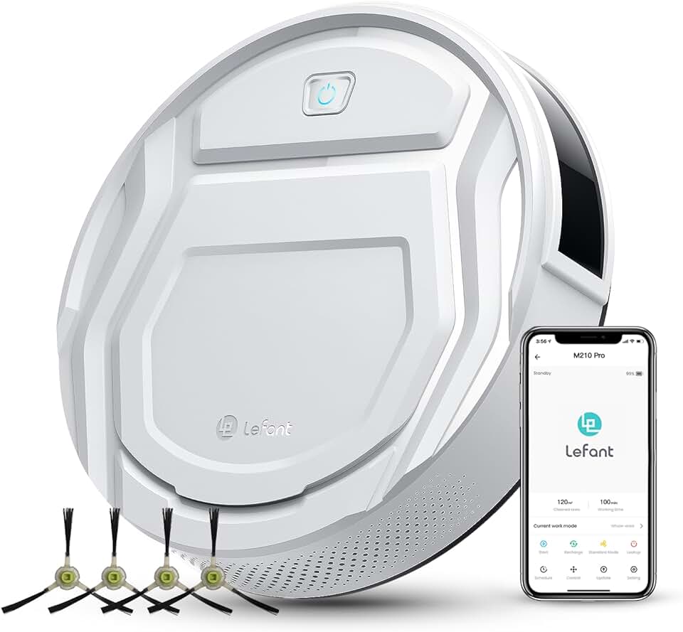 Lefant M210 Pro Robot Vacuum Cleaner, 2200Pa Powerful Suction, 120 Mins Runtime, Automatic Self-Charging, Wi-Fi/App/Alexa Control, Ideal for Pet Hair, Hard Floor and Low-Pile Carpet