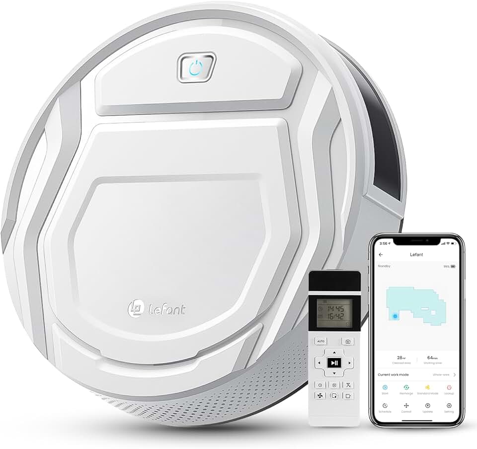 Lefant Robot Vacuums, 2200Pa Strong Suction, 120 Mins Runtime, Automatic Self-Charging, Slim, Quiet, Wi-Fi/App/Alexa/Remote Control, Ideal for Pet Hair Hard Floor and Daily Cleaning, M210 Pro