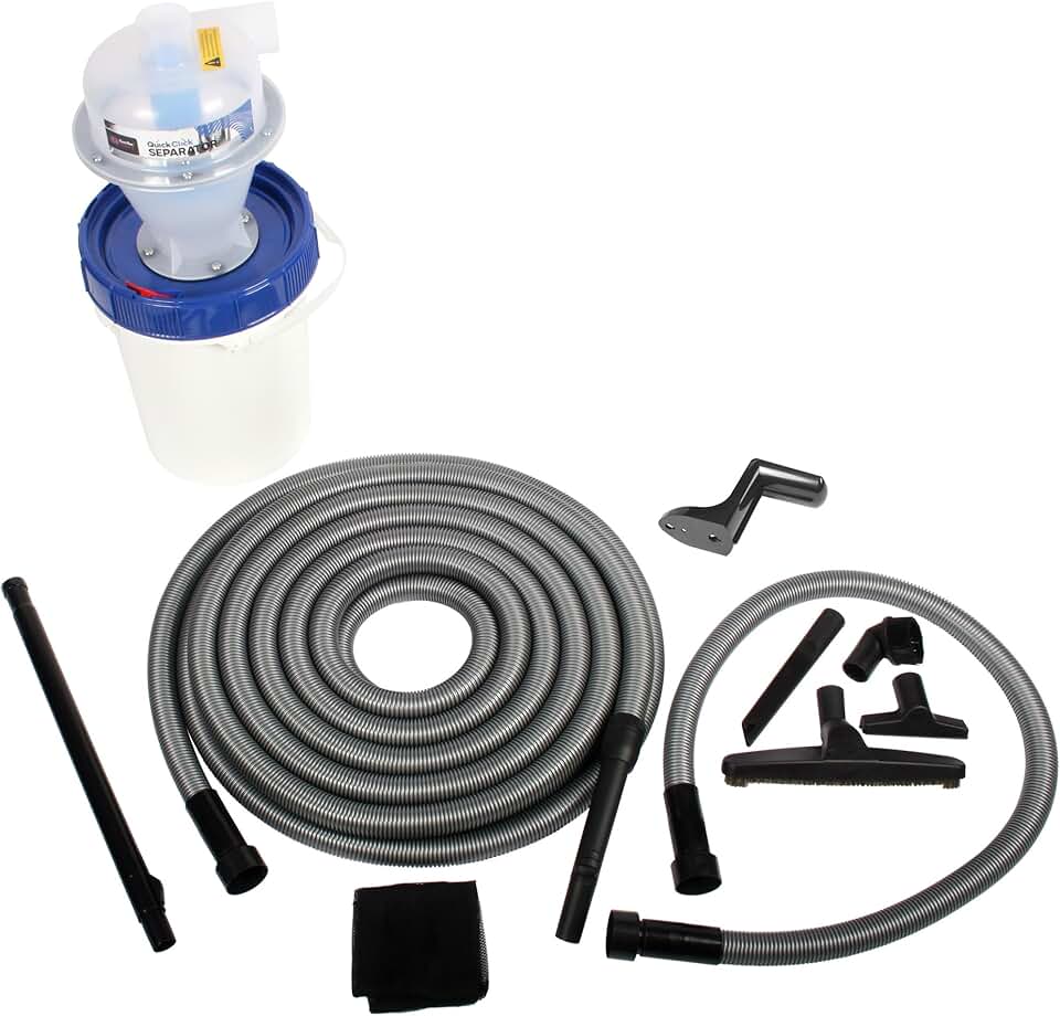 Cen-Tec Systems 98746-AZ Assembled Quick Click Dust Separator with Locking 5 Gallon Collection Bin and 50 Ft. Hose Garage Attachment Kit for Wet/Dry Vacuums, Black