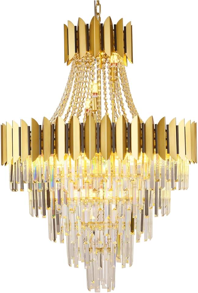 Luxurious K9 Crystal Chandelier,5 -Tire 21-Light Large Contemporary Empire Style Crystal Chandelier,Crystal Ceiling Pendant Light Fixture for Home Hotel Store (D32in-21 Lights)