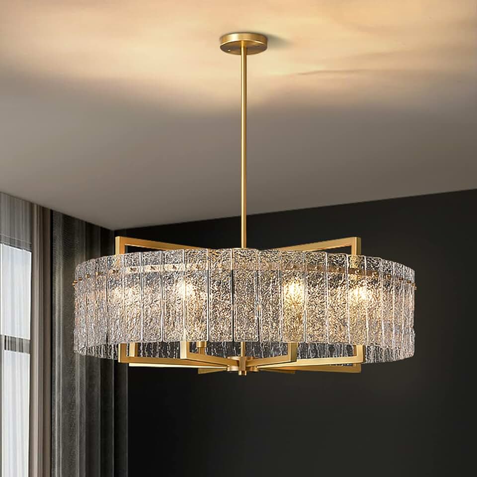 33.5" Modern Round Chandelier, Luxury 8-Light Round Drum Chandelier, Large Gold Chandelier Lighting Fixtures, Water Ripple Glass Chandeliers for Living Room Dining Room Bedroom Hotel Foyer