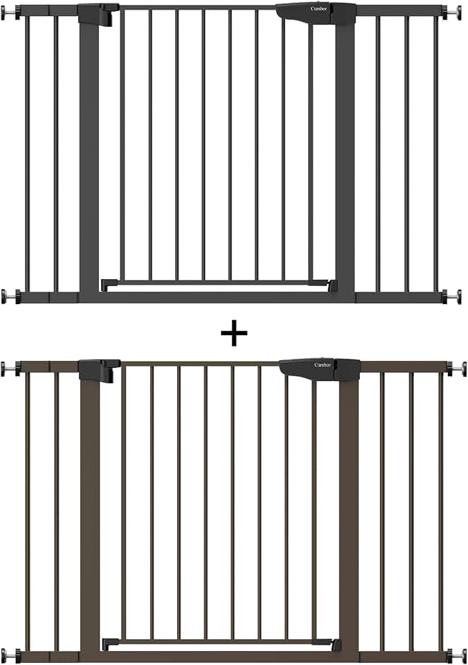 Cumbor 46" Auto Close Safety Baby Gate, Extra Tall and Wide Child Gate, Easy Walk Thru Durability Dog Gate for House, Stairs, Doorways. Includes 4 Wall Cups, (2) 2.75-Inch and 8.25-Inch Extension