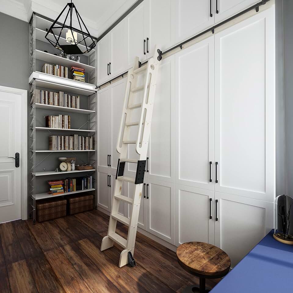 16FT Sliding Library Ladder Hardware kit Telescopic Upper Roller,Floor Wheels with Brakes (No Ladder)