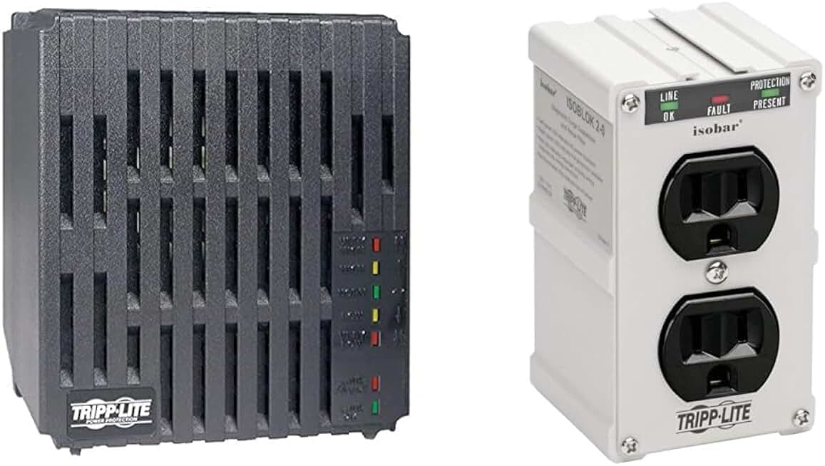 Tripp Lite LC2400 Line Conditioner 2400W AVR Surge 120V 20A 60Hz 6 Outlet 6-Feet Cord & Isobar 2 Outlet Surge Protector Power Strip, Direct Plug in, Metal, Lifetime Limited Warranty