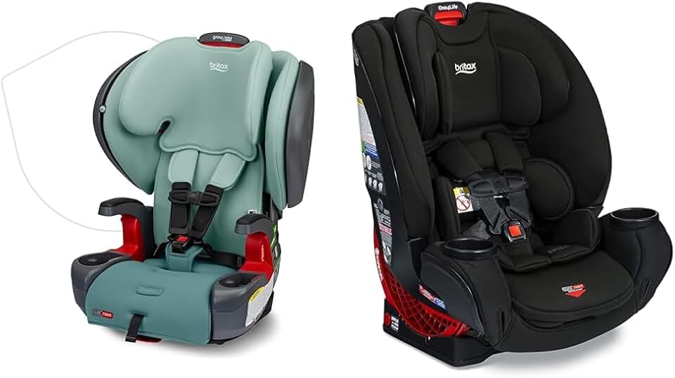 Britax Grow with You ClickTight Plus Harness-2-Booster Car Seat, 2-in-1 High Back Booster, SafeWash Cover, Green Ombre & One4Life ClickTight All-in-One Car Seat, Eclipse Black