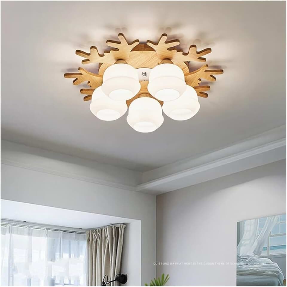 Pendantlight, Hanging Ceiling Light Wood Cover Room Lamp Modern Led Light Fixture Loft Bedroom Lamps Living Room Home Lighting Beauty Comes/Cold White/5 Heads