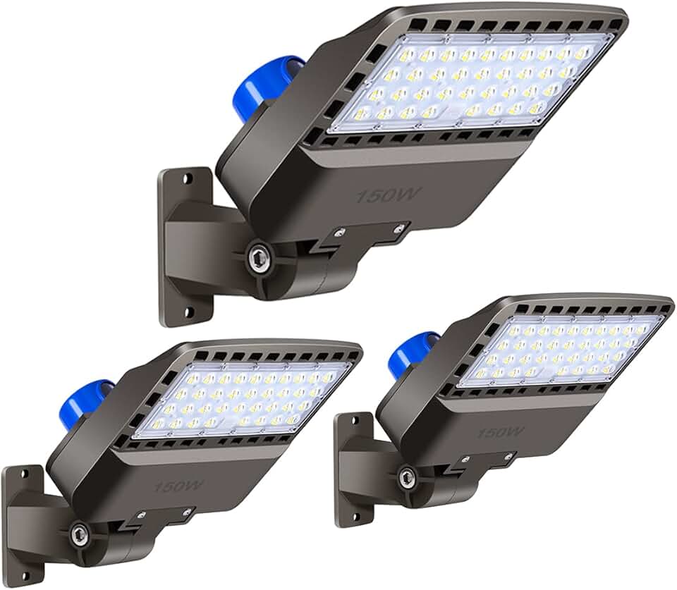 Juyace 150W led Parking lot Light Dusk to Dawn Led Outdoor Lighting Commercial Flood Light IP65 Waterproof 5000K Wall Mount 100-277V Shoe Box Street Yard Security Area Lighting(3 Pack)