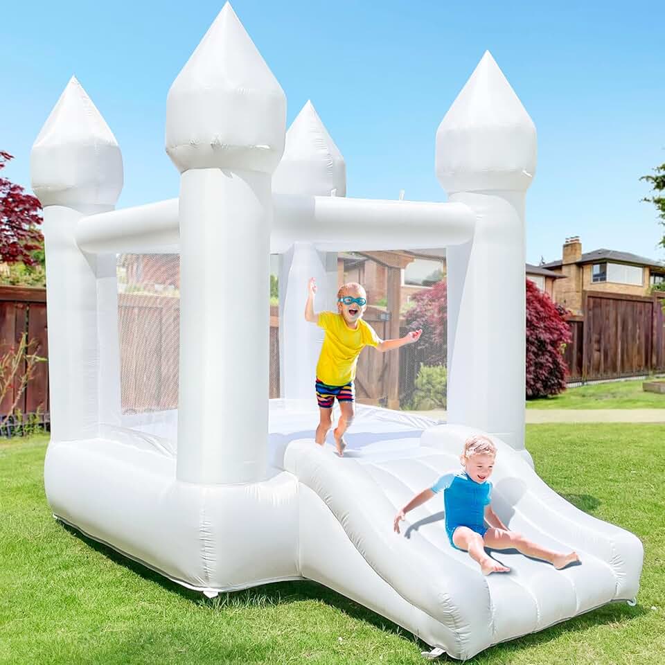 White Bounce House Indoor Outdoor Bouncy Castle for Kids 2-8 Oxford Toddler Bounce House with Slide Balloon & Blower,103 x 71 x 90 inch,Children's Birthday Party Gifts