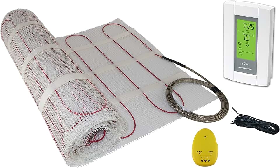 25 Sqft Mat, Warming Systems 120 V Electric Tile Radiant Floor Heating Mat with Programmable Thermostat, Includes Installation Monitor and Floor Temperature Sensor