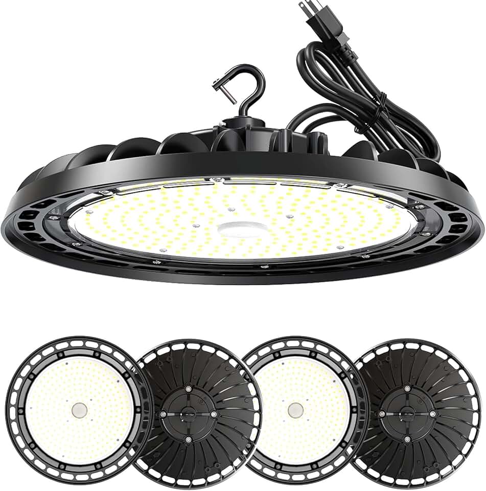 LED High Bay Light 240W PREM 4-Pack, 12' UFO Commercial Lighting Fixture w/Plug for Garage Shop Warehouse Workshop, 5000k 35000lm Dimmable IP65 UL ETL Listed (Count of 4)
