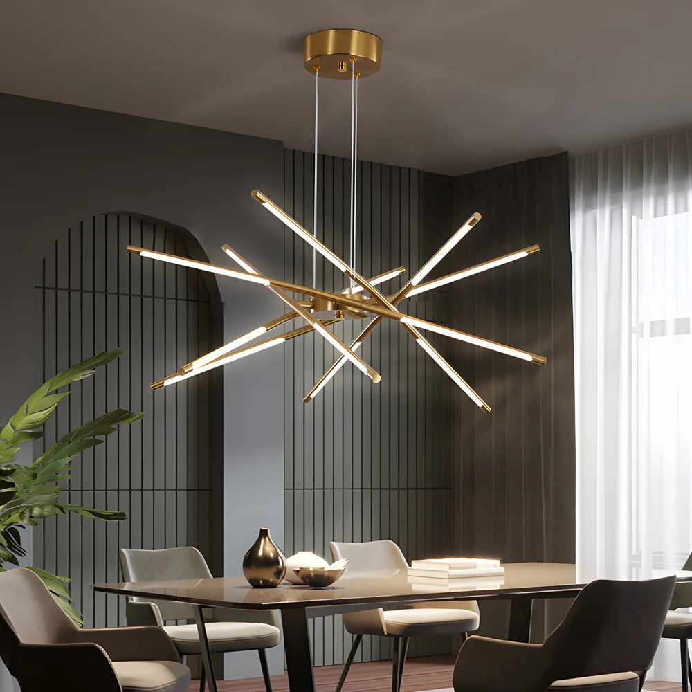 Modern Stepless Dimming Long Strip Sputnik LED Chandelier - Gold/Black+Gold