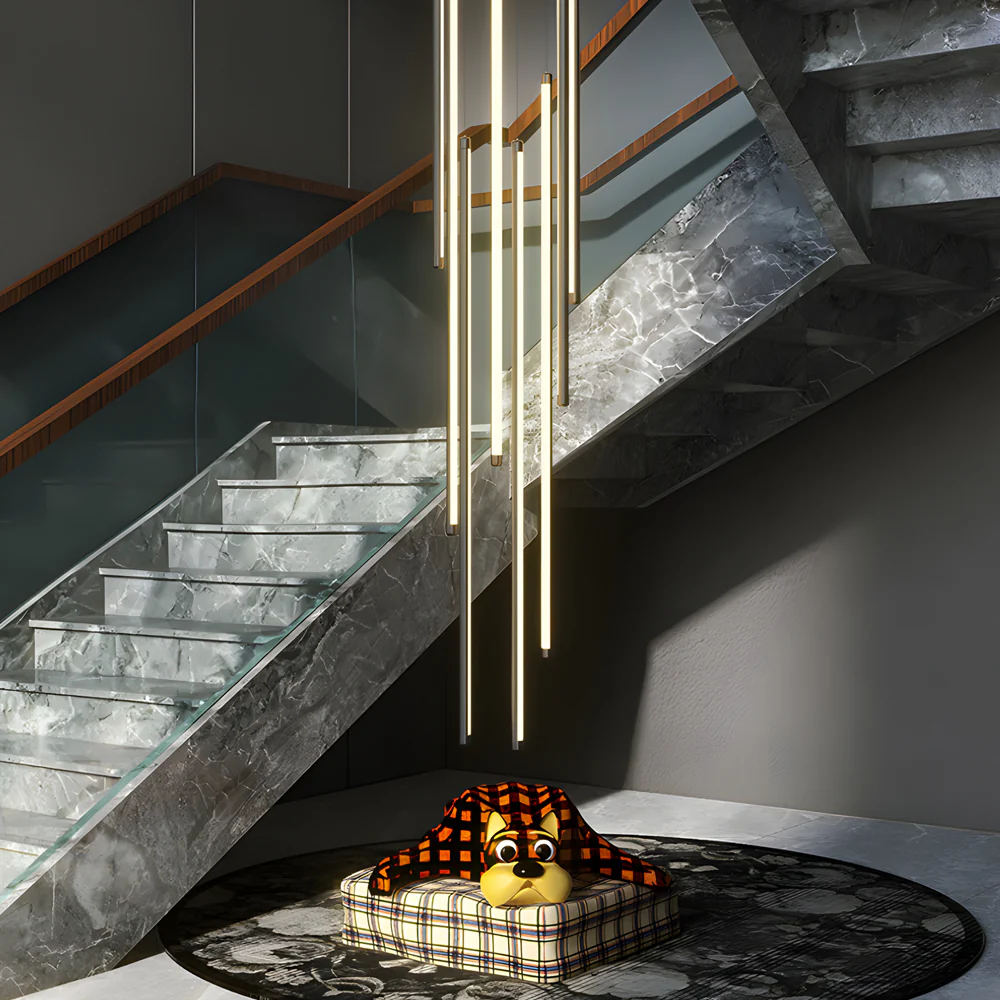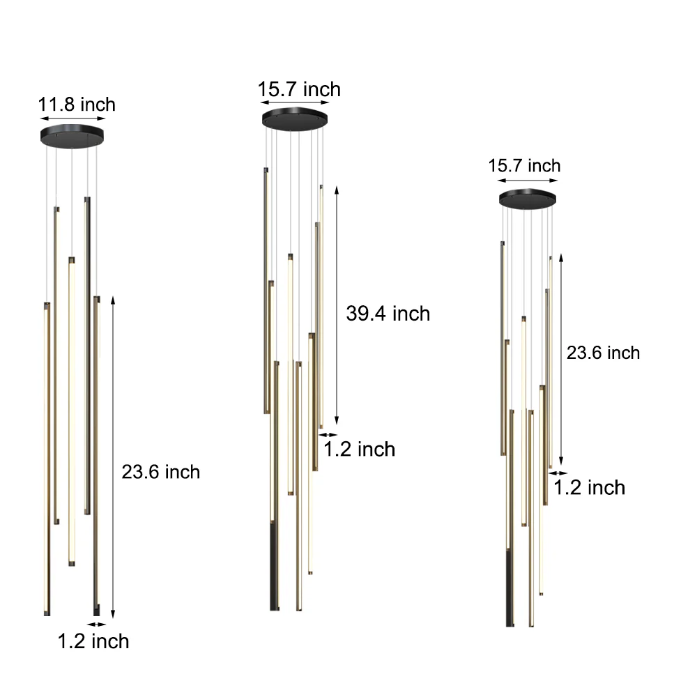 Modern Spiral Multi-Strip Chandelier for Staircases