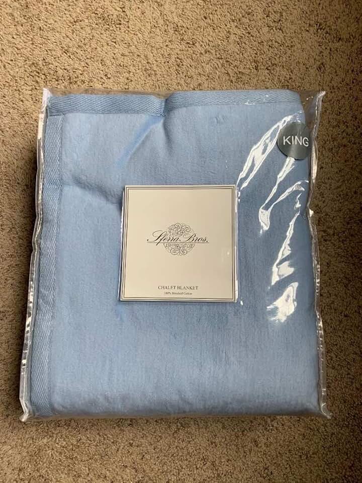Sferra King Chalet Blanket Soft Plush 100% Brushed Cotton Blue - Limited Edition!