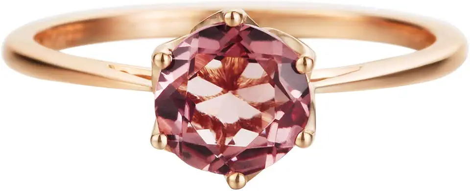 AGVANA 14K Solid Rose Gold 0.85Ct Genuine Pink Tourmaline Promise Engagement Ring for Women October Birthstone Fine Jewelry Anniversary Birthday Gifts for Women Mom Wife Lover, Size 5-8