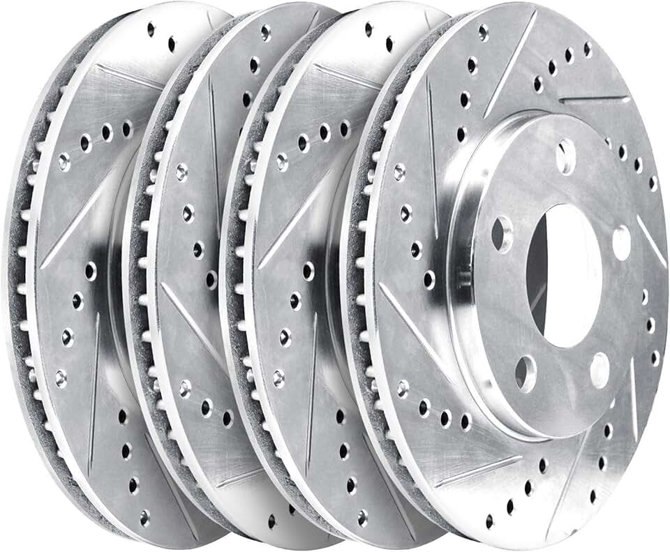 R1 Concepts Rear Brake Rotor Kit |Brake Rotors| Brake Disc |Drilled and Slotted|fits 2009-2020 Genesis G80; Hyundai Genesis; Kia K900