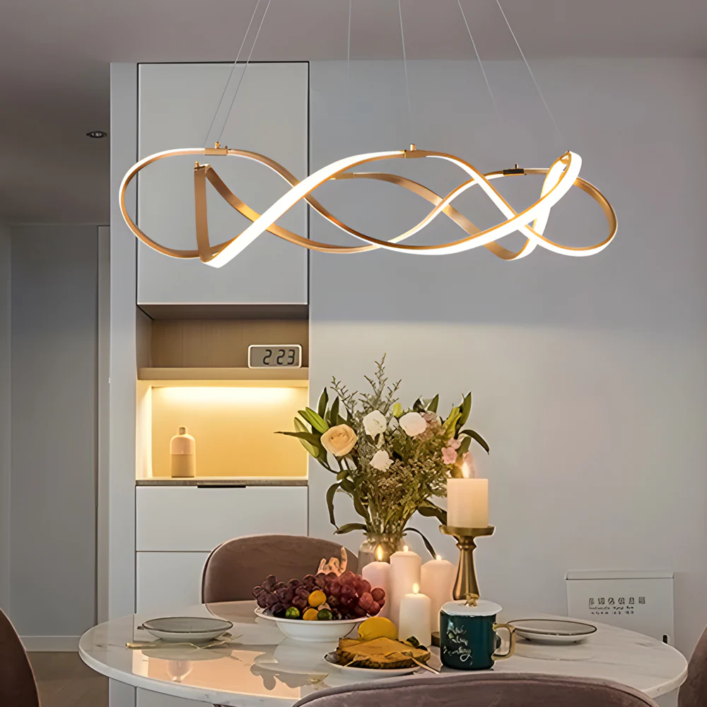 Modern Round Dimmable LED Aluminum Geometric Chandelier - Gold