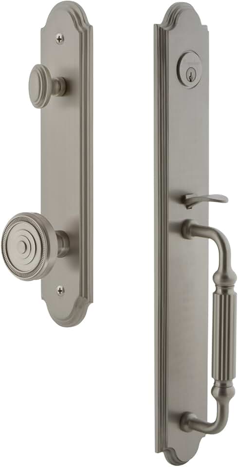 Grandeur 844343 Hardware Arc One-Piece Handleset with F Grip and Soleil Knob, Backset Size-2.375", Satin Nickel