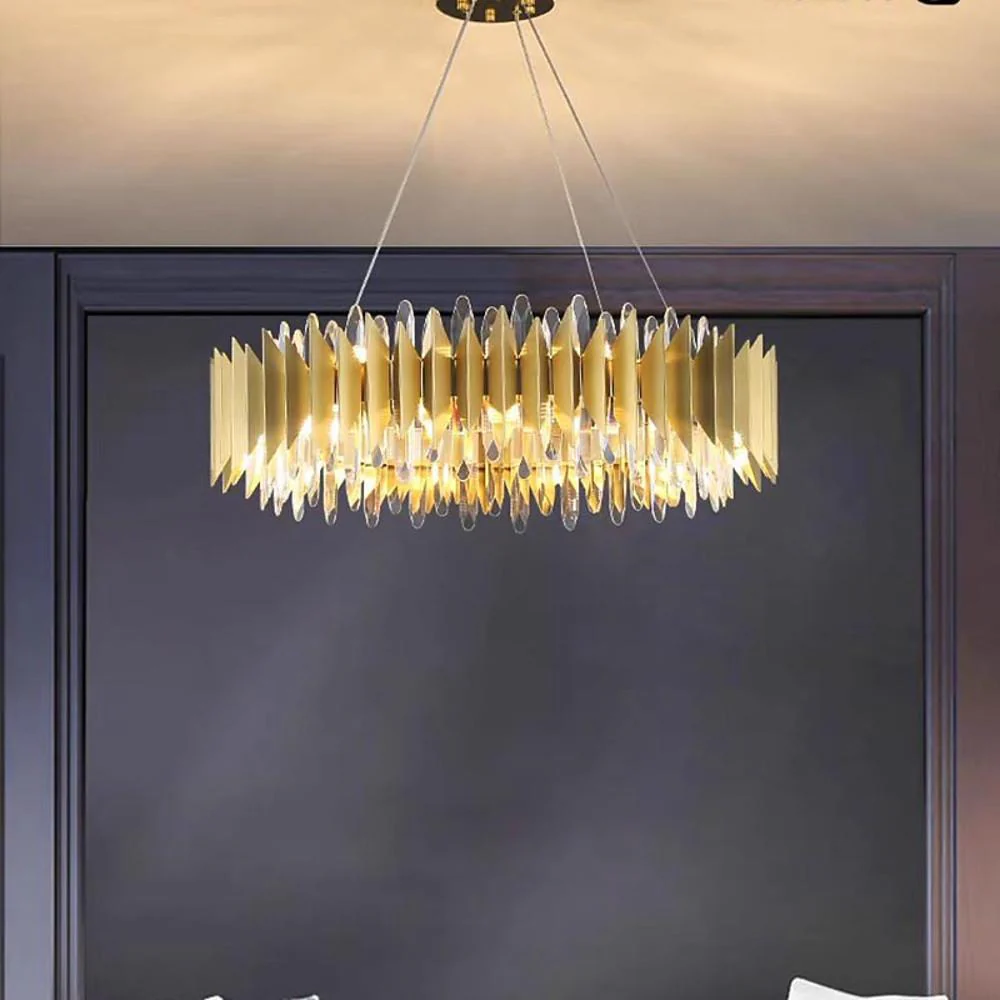 Modern Round Crystal Chandelier Stainless Steel Single Ceiling Light
