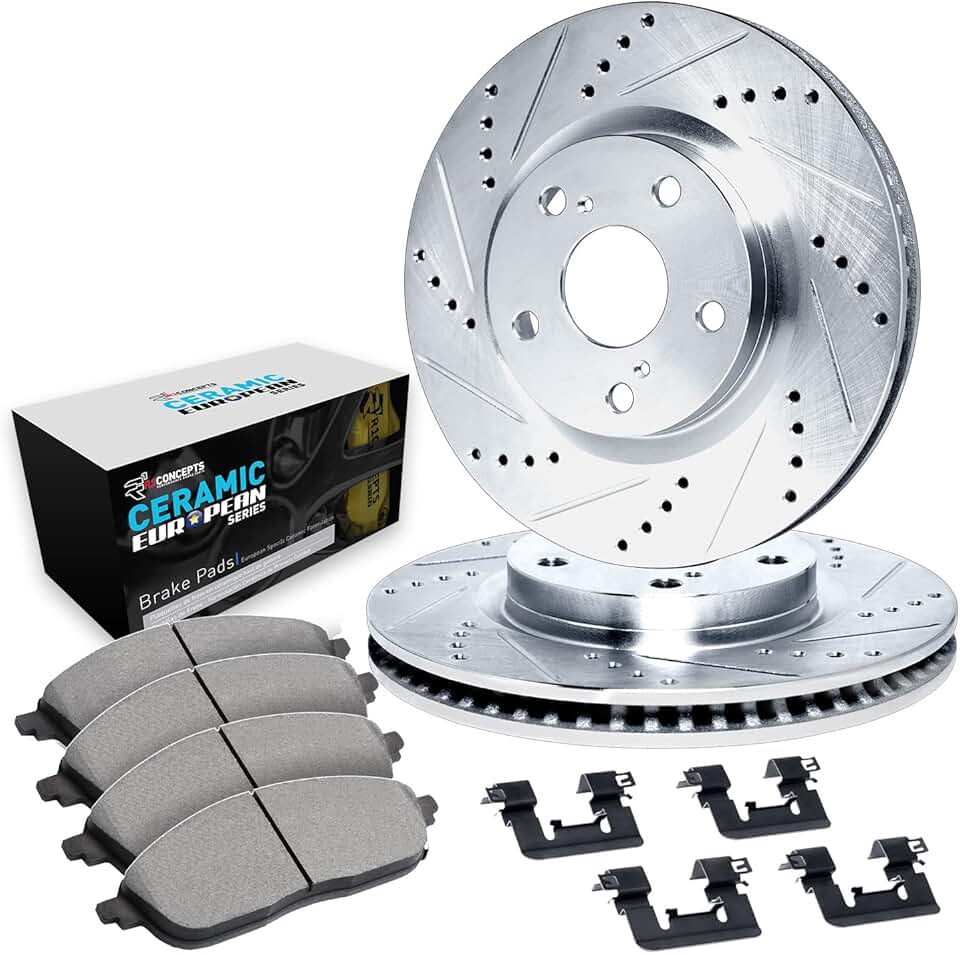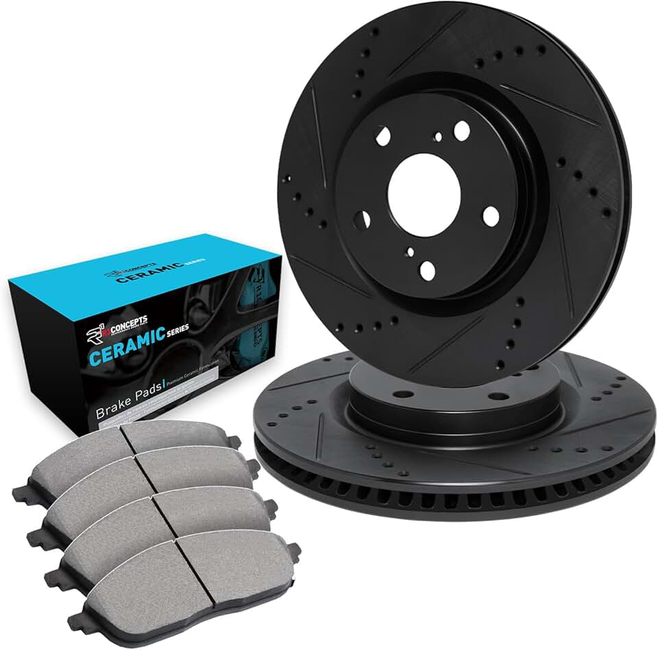 R1 Concepts Front Brakes and Rotors Kit |Front Brake Pads| Brake Rotors and Pads| Ceramic Brake Pads and Rotors|fits 1995-2000 Chrysler Cirrus; Dodge Stratus; Plymouth Breeze