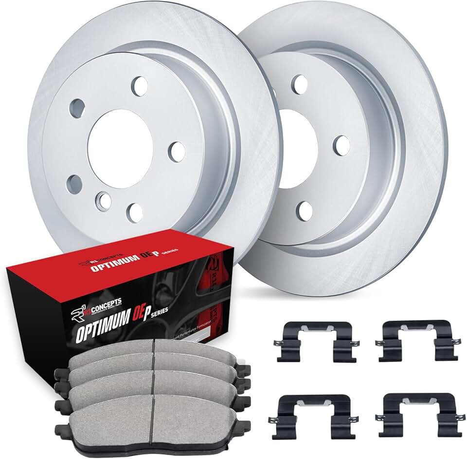 R1 Concepts Rear Brakes and Rotors Kit |Rear Brake Pads| Brake Rotors and Pads| Optimum OEp Brake Pads and Rotors |Hardware Kit|fits 2017-2019 Jaguar XE