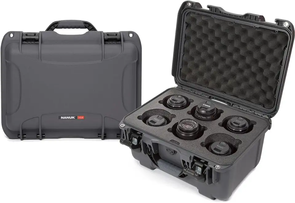Nanuk Medium Series 918 Lightweight NK-7 Resin Waterproof Protective Case with Foam Insert for 6 Camera Lens, Graphite