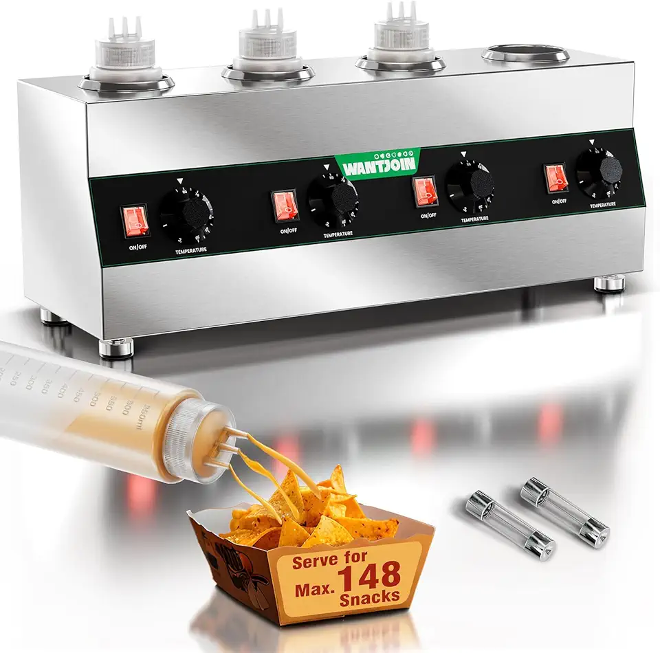 Electric Sauce Warmer Dispenser - Countertop Stainless Steel Sauce Heat Preservation Machine 640W Hot Fudge Nacho Cheese Ketchup Chocolate Warmer for Commercial with 650ml Squeeze Bottle*4