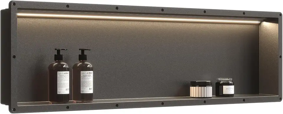 Shower Niche Insert Tile Ready Shower Niche with LED for Shower Wall 14"X50" Recessed Wall Shelf for Bathroom, Plenty of Room for Tall Bottles, Shampoo, Conditioner and Soap (Black)