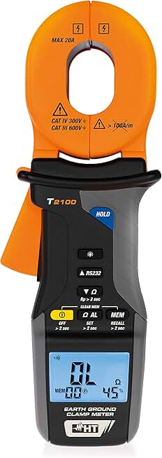 HT Instruments T2100 Clamp for Measuring Earth Resistance Without Rods.