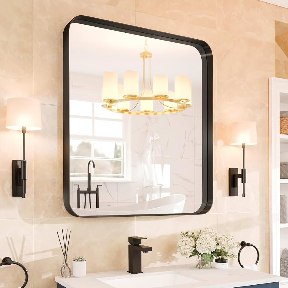 28x32 Black Bathroom Mirror - Black Metal Framed Vanity Mirror - Luxurious Wall Mirror - Modern Bathroom Mirrors for Over Sink - Decorative Mirrors for Wall