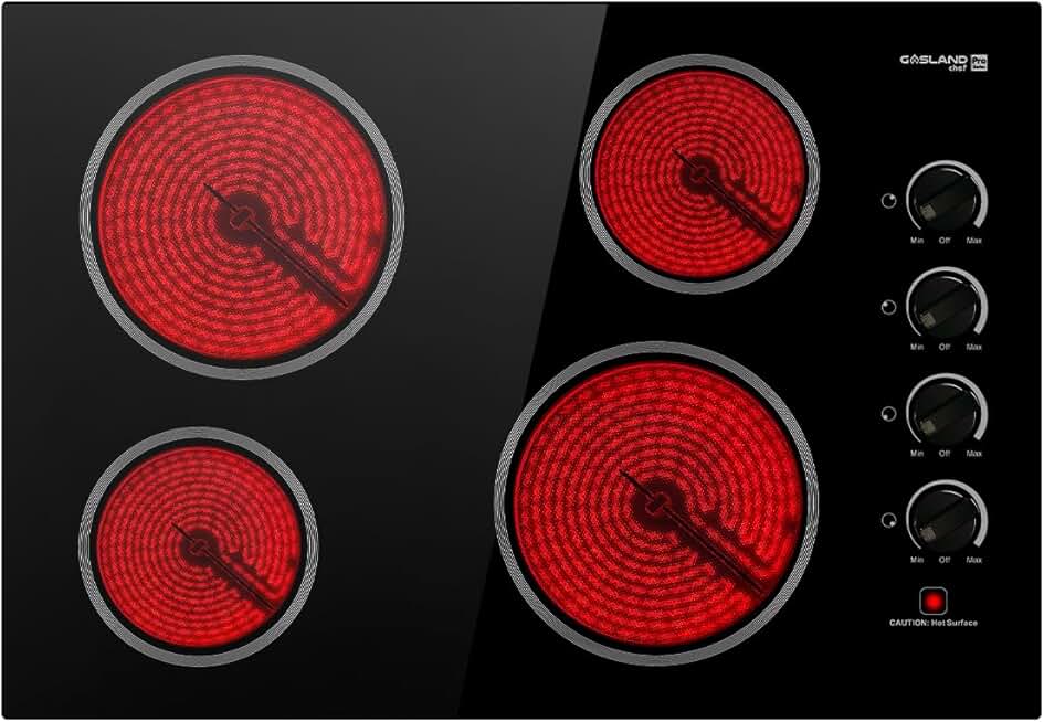 GASLAND Chef Electric Cooktop 30 Inch, Built-in Ceramic Radiant Stovetop Pro CH77BS with 4 Burners,ETL Approved, Knob Control, Hot Surface Indicator, Child Safety Lock, 240V