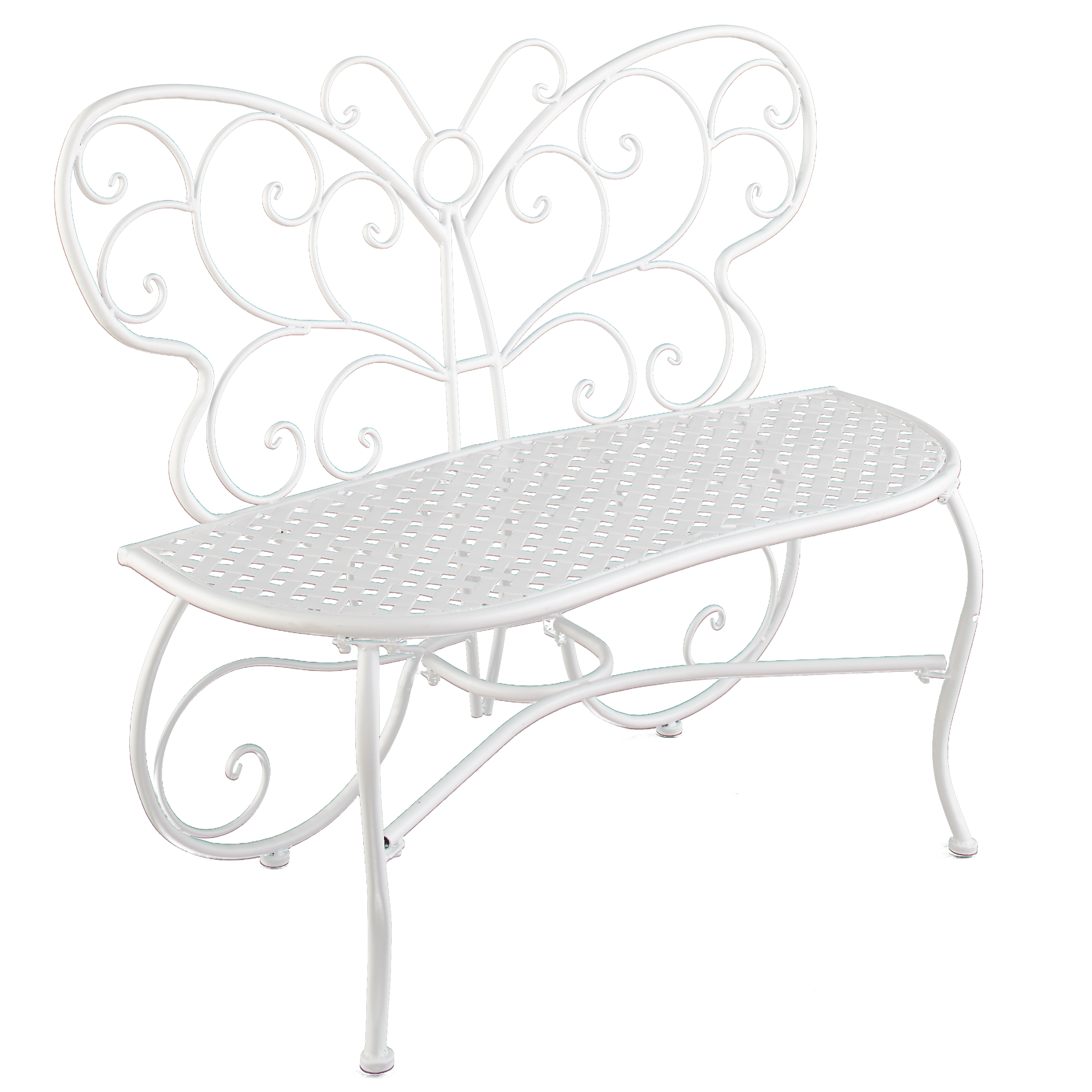 Decorative White Metal Butterfly Motif Bench - Home Garden Accent