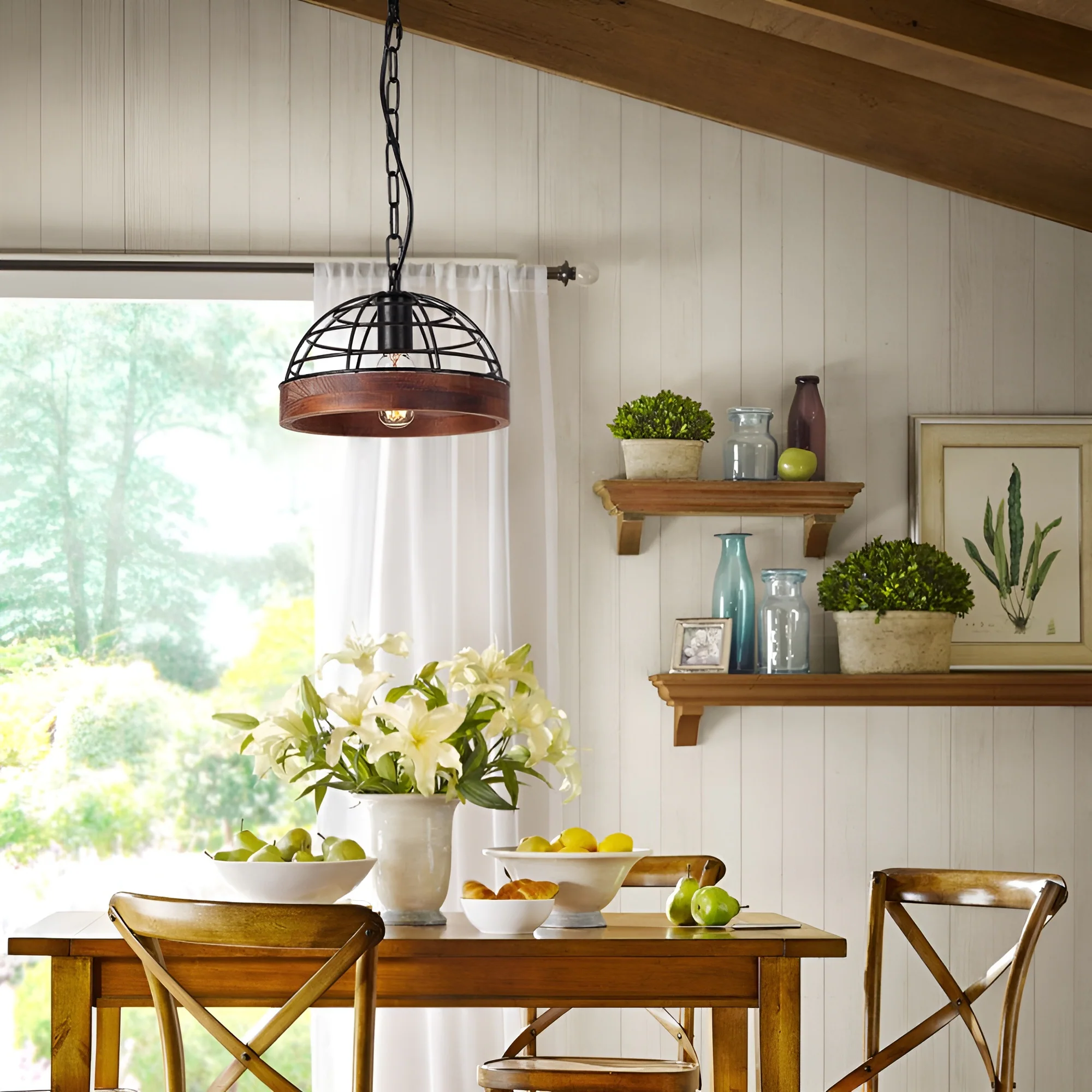 Chinitta 1 - Lantern Style Pendant Light with Wood Accents