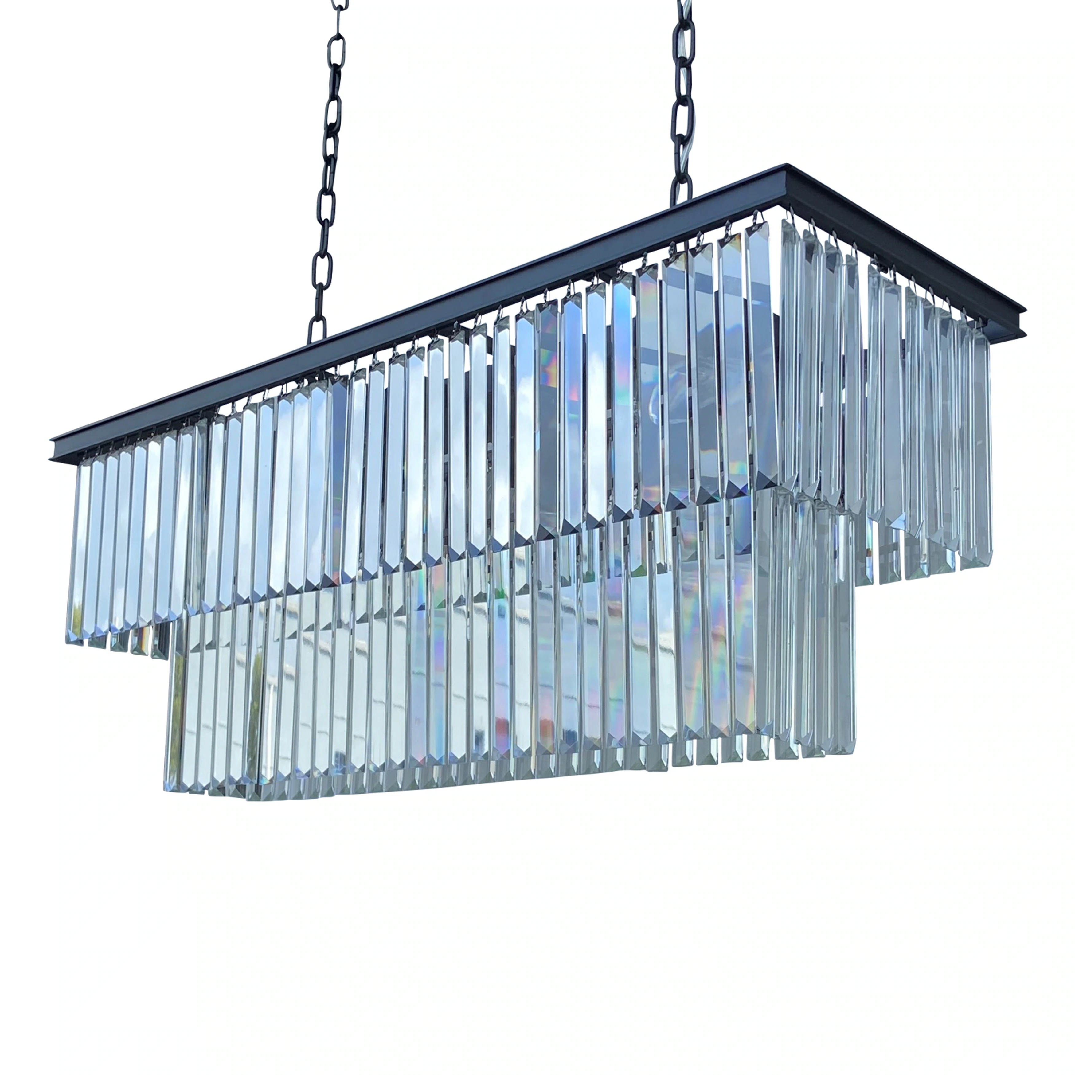 D'Angelo 40-inch Wrought Iron Rectangular Fringe Crystal Chandelier