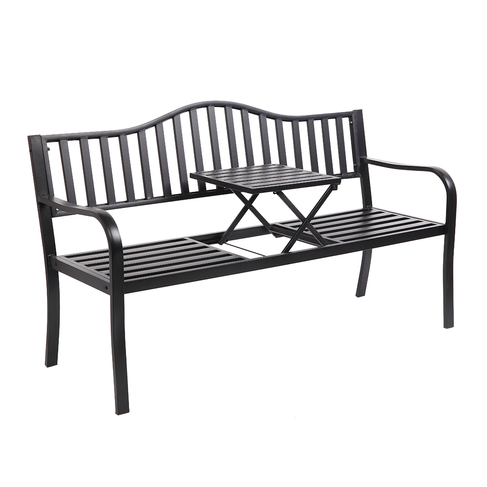 VINGLI 59" Patio Garden Bench Table Outdoor Metal Park Benches, Black Cast Iron Steel Frame Chair Porch Path Yard Lawn Decor Deck