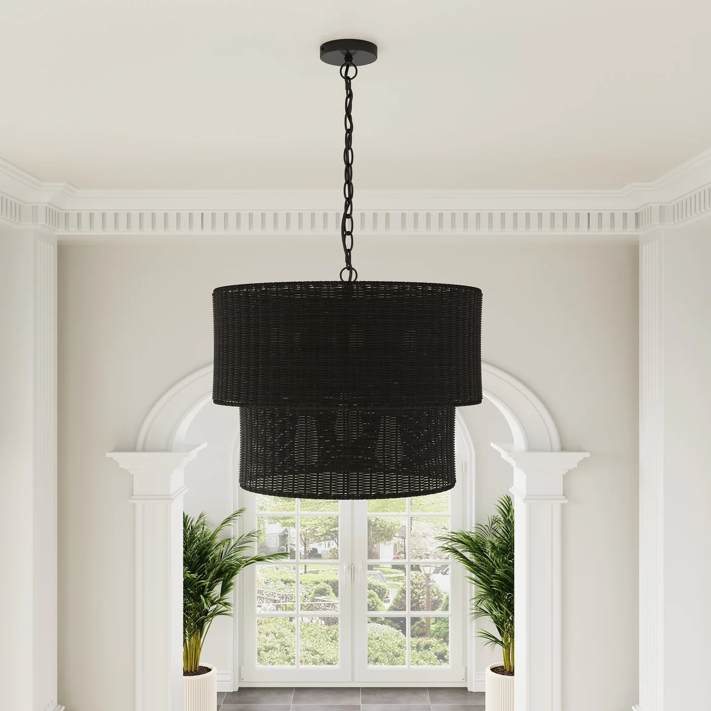 Farmhouse Matte Black Hand-Woven Rattan Craft Pendant Light
