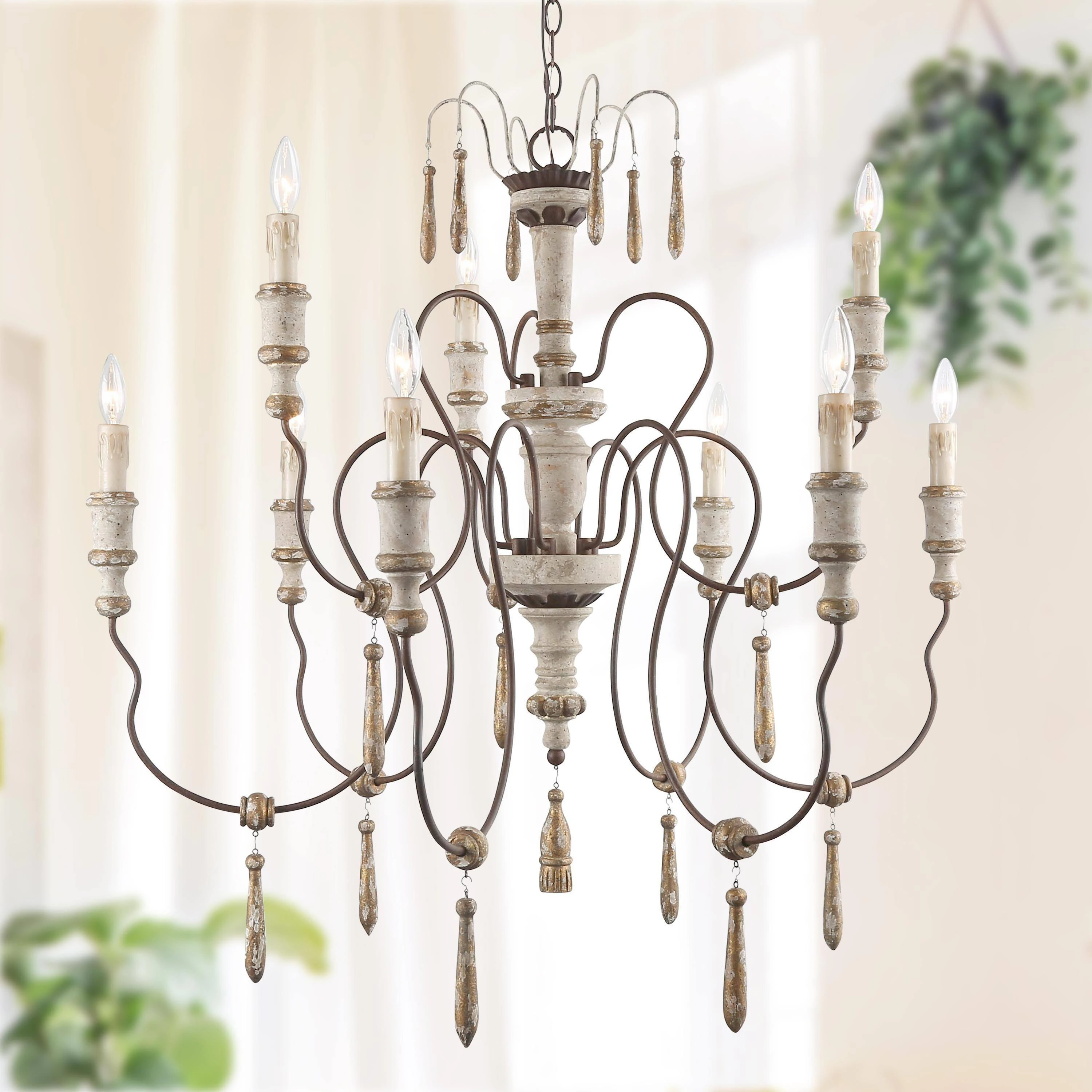 French Country Shabby-chic 9-light Distressed Wood Chandeliers