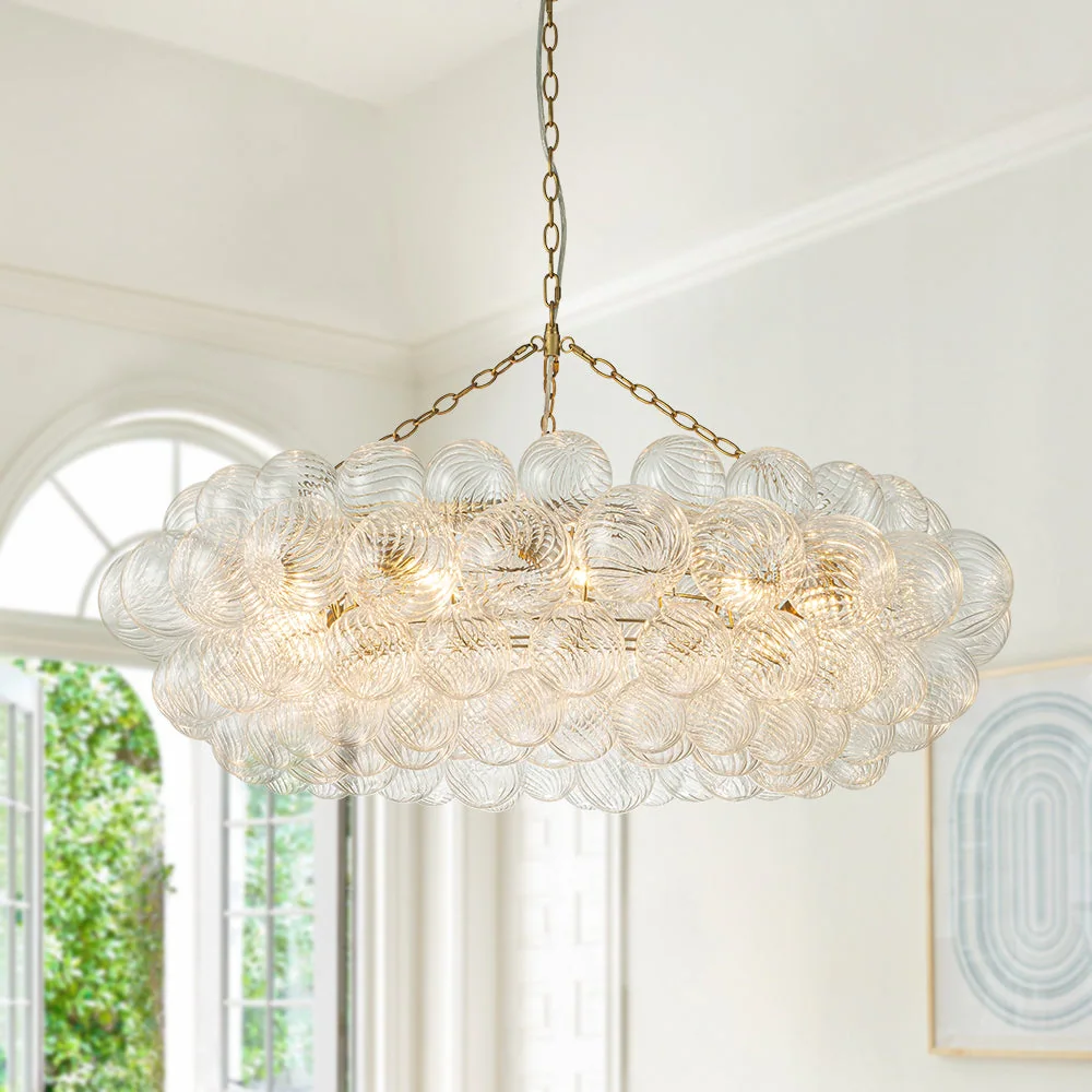 32in 8-Light Swirled Glass Globe Brass Wheel Bubble Pendant Chandelier