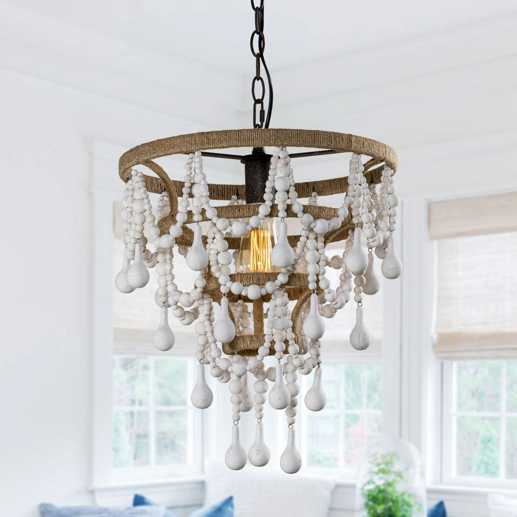 Farmhouse Wood Beaded Chandelier Hanging Light