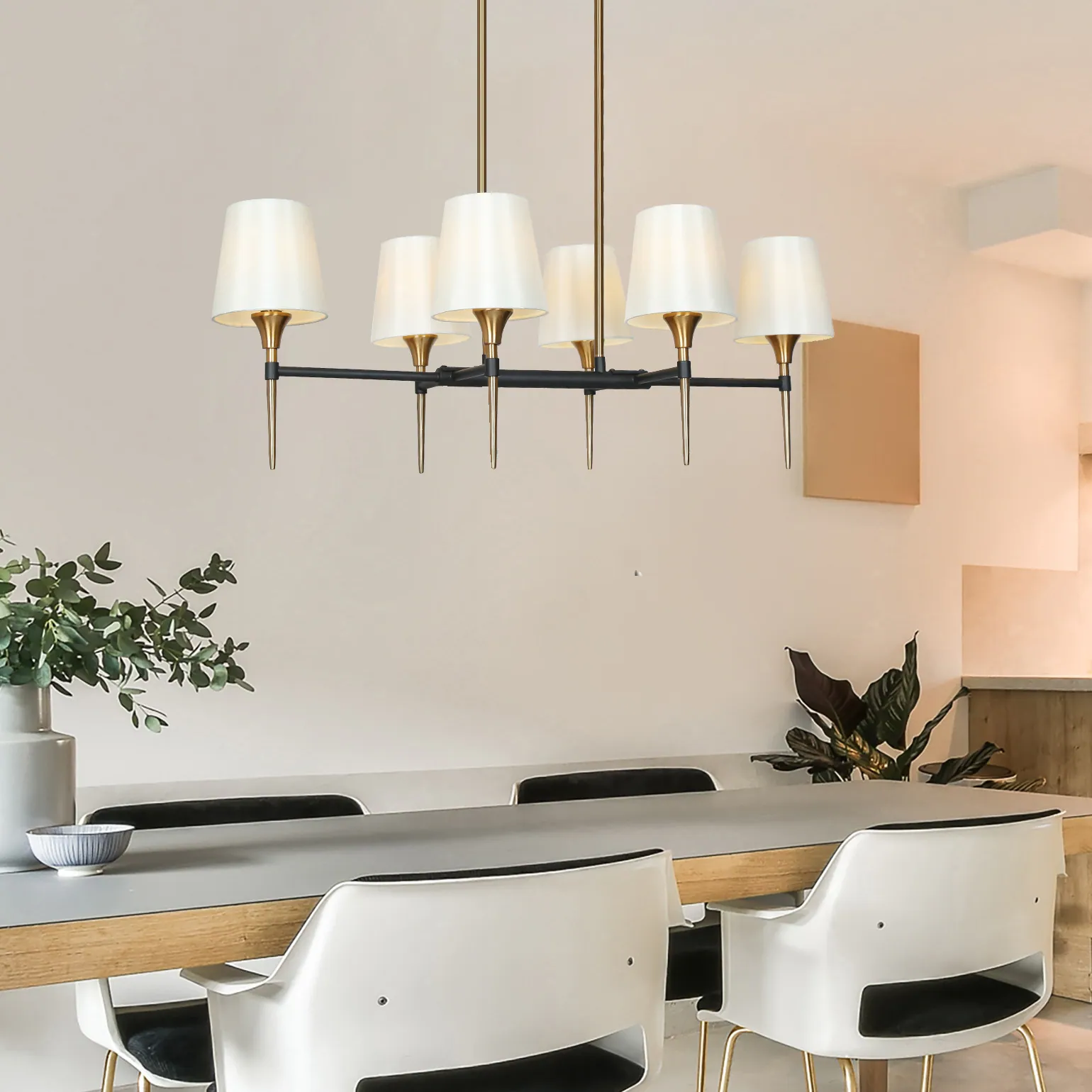 Modern Farmhouse Black Gold Linear Chandelier Mid-century 6-Light 31.5-inch Shaded Island Pendat