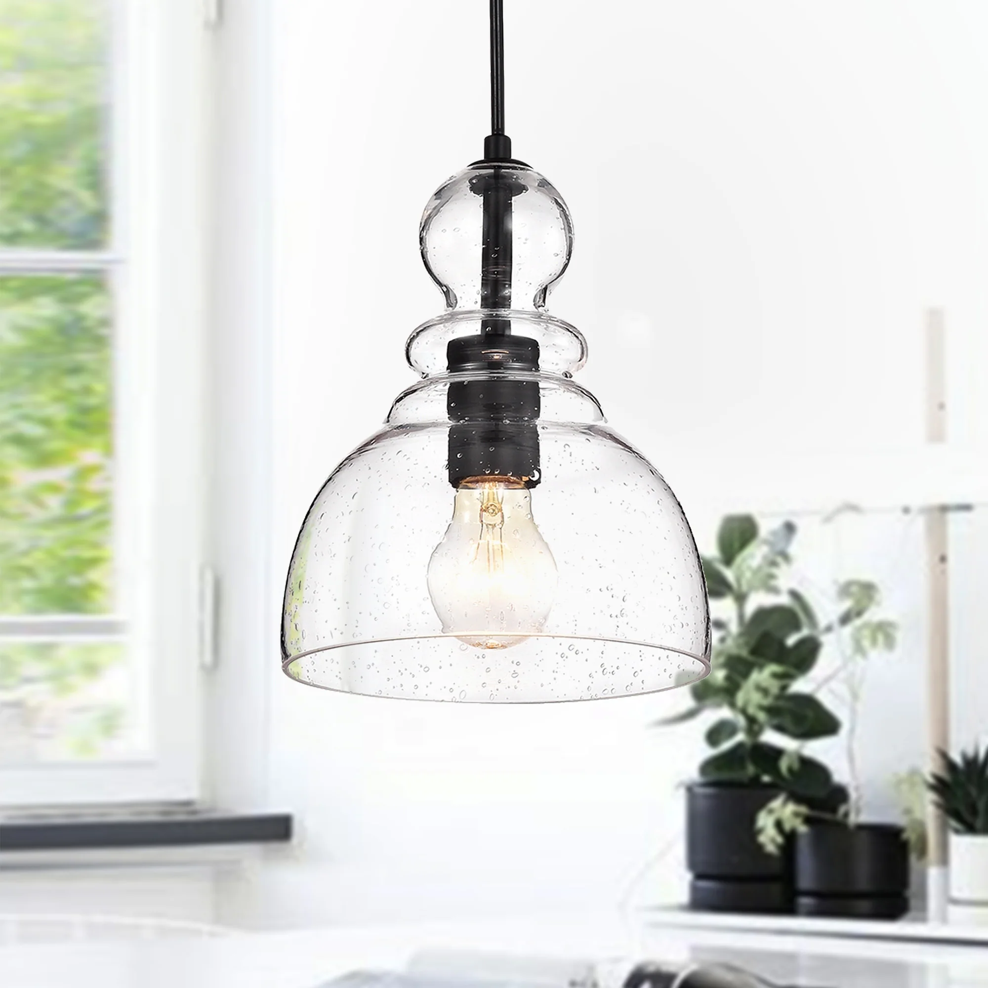 Nefelt Matte Black 1-light Decanter Seeded Glass Pendant