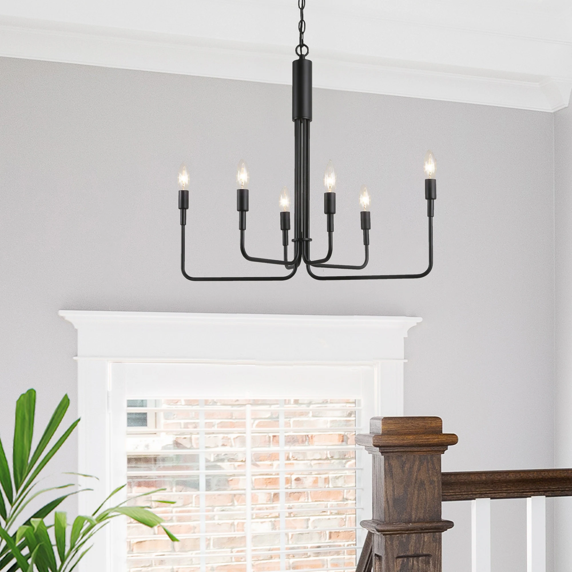 Modern Farmhouse 6-Light Black Candle Chandelier for Dining Room