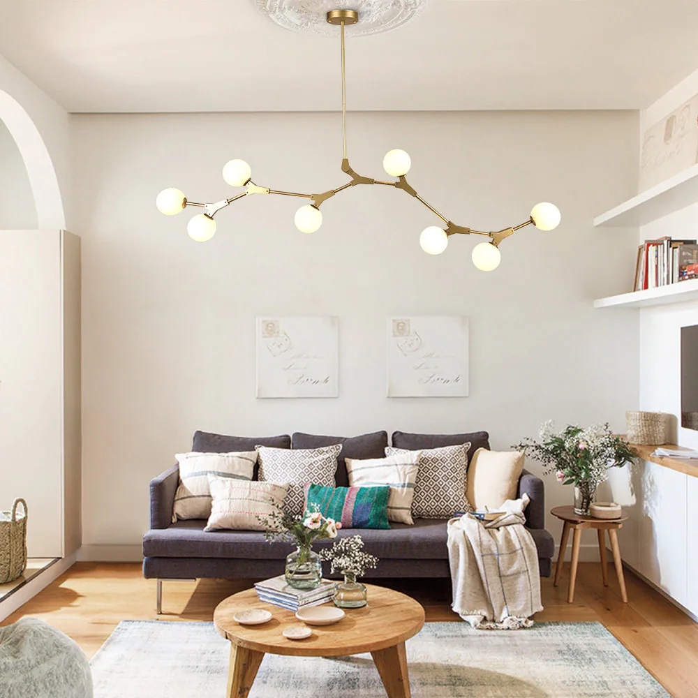 Mid-century 8-light Branch Opal Glass Globe Linear Island Chandelier