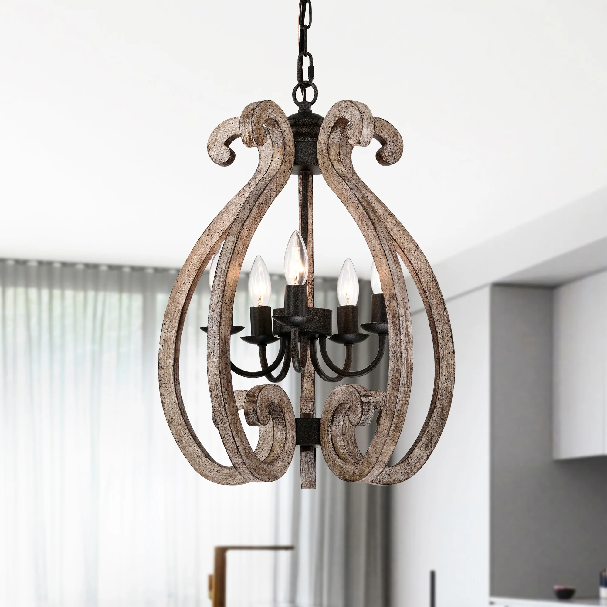 Lina 17 Inch Farmhouse Lantern Wood Grain Finish Pendant 6 Light