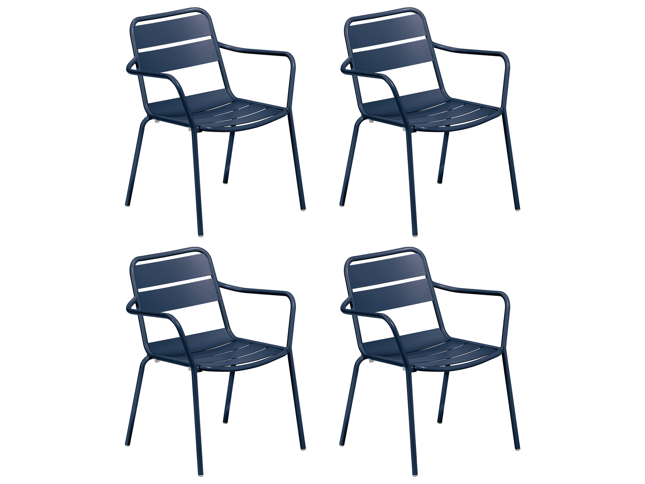 Kapri Aluminum Prussian Stackable Dining Arm Chair (Set of 4)