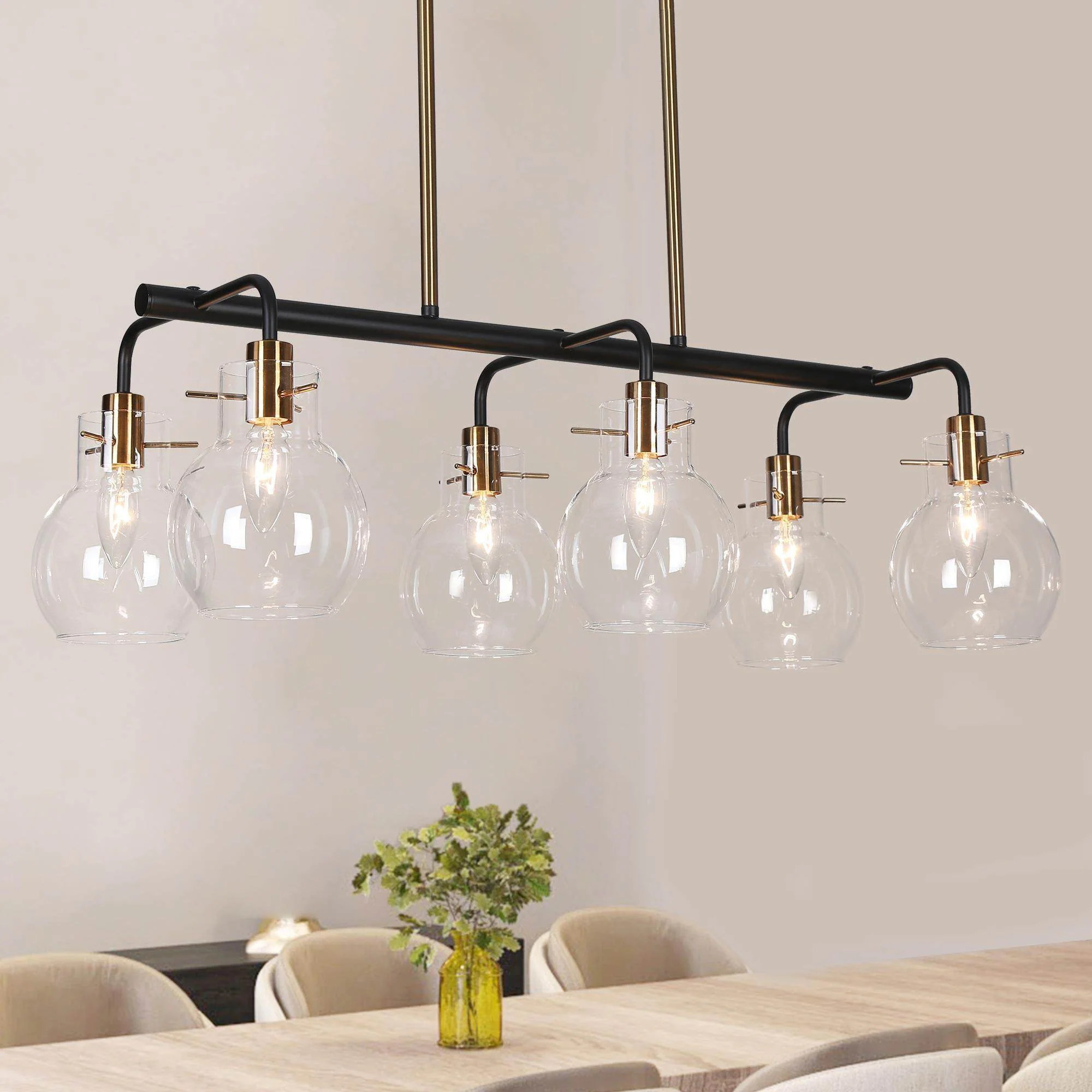 Modern 6-Light Black Gold Linear Chandelier Island Lights for Dining Room
