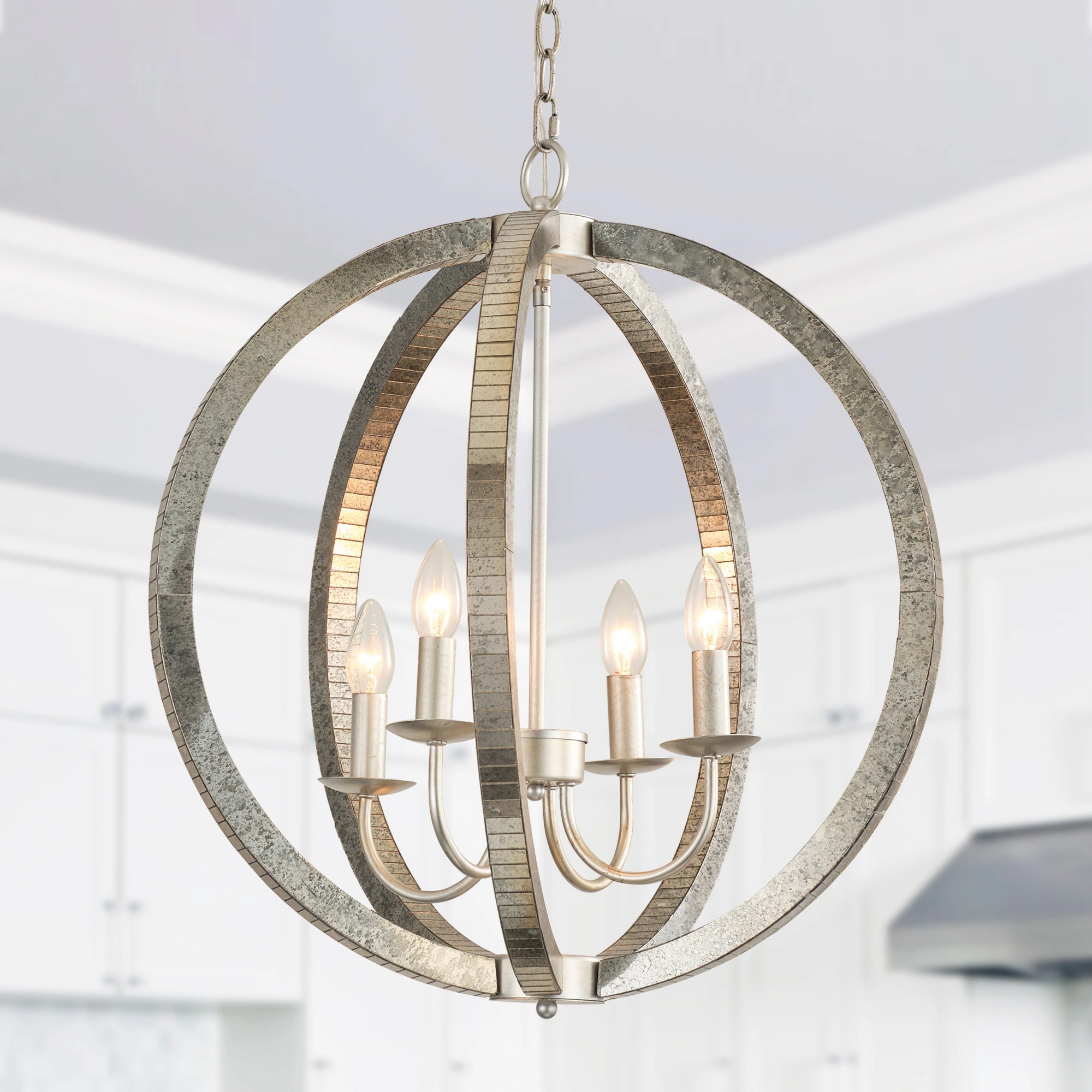 22" Wide Weathered Silver 4-Light Orb Chandelier Globe Hanging Light