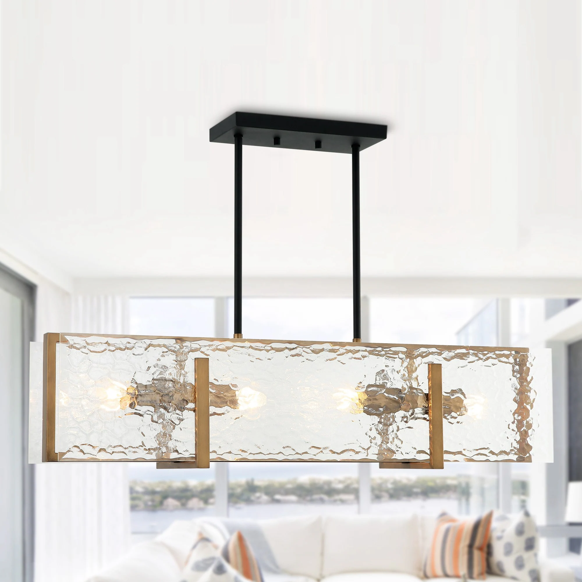 4-Light Gold and Black Modern Chandelier Glam Dimmable Pendant Light Kitchen Island with Frosted Glass for Dining Room