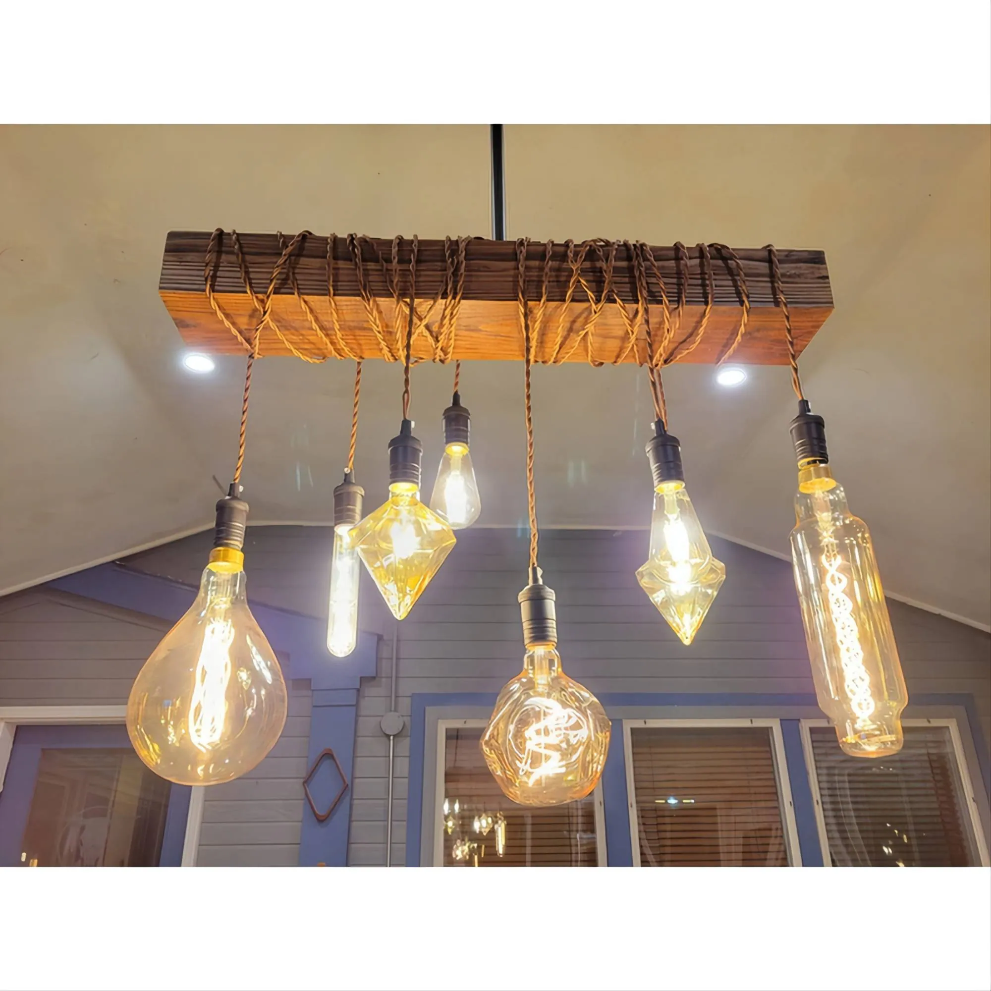 Distressed Wood Beam Kitchen 8-Light Chandelier