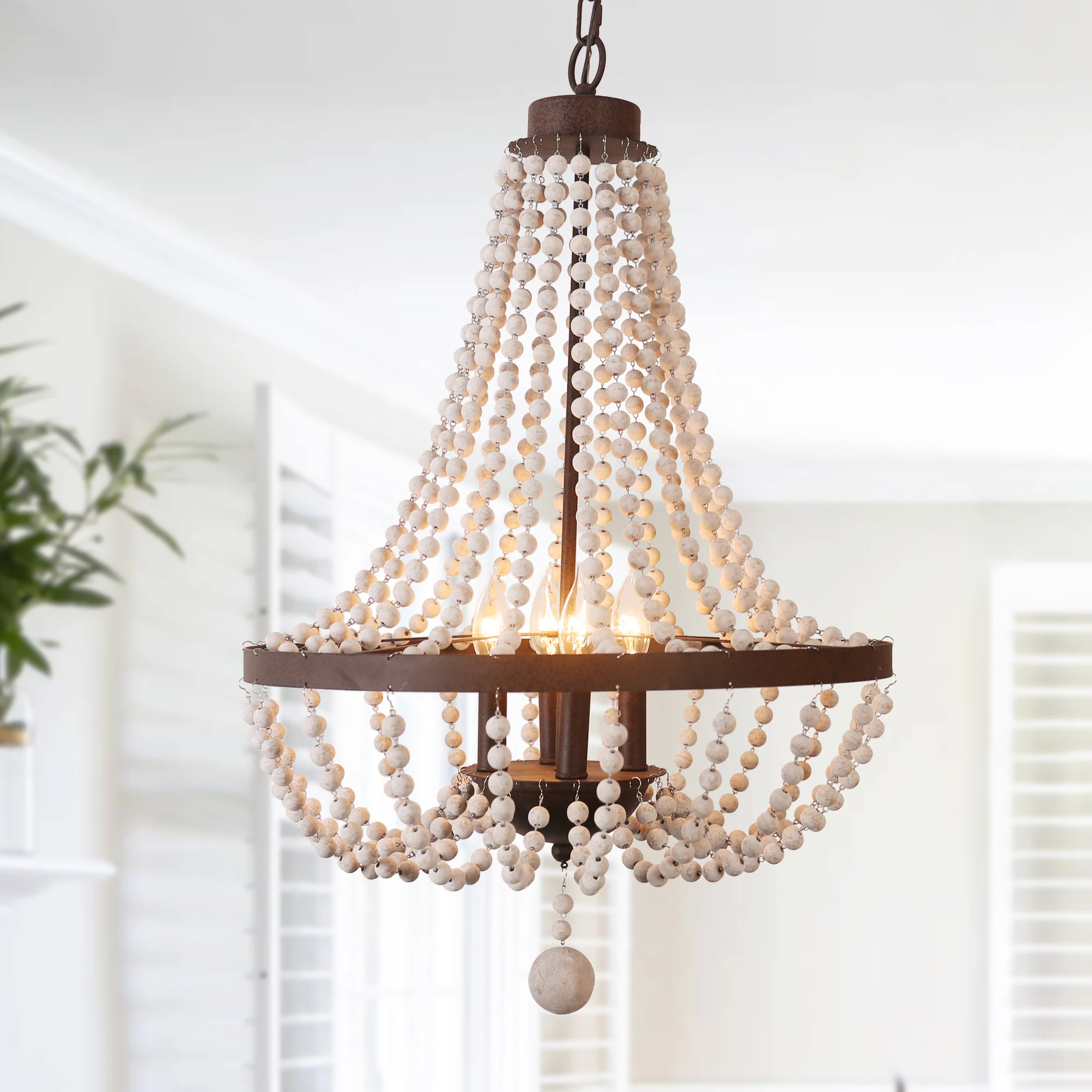 Cusp Barn Farmhouse Rustic 4-Light Wood Beaded Chandelier